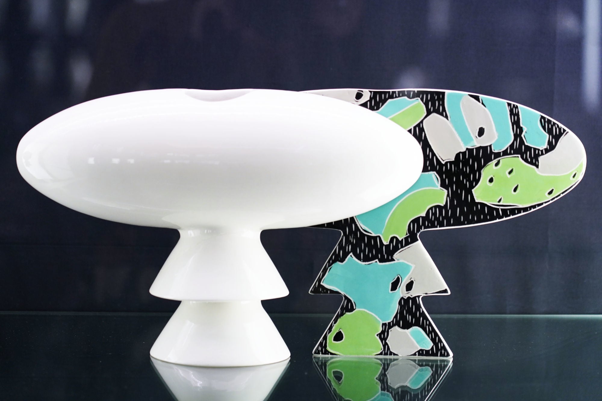 „Bevor er sie weitergab, stellte er sie aus und bekam gleich Anfragen von Leuten, die sie haben wollten. Und so hat er entschieden, dass die sechs interessantesten in Produktion gehen sollten.“ Ähnliche Umstände brachten sie auch zu einem gestalterischen Duett mit Alessandro Mendini: „Wir wollten mal vierhändig entwerfen und stellten die Regel auf: Erst entwirft jeder von uns beiden eine Vase, dann entscheidet der andere über Dekor und Farbe.“