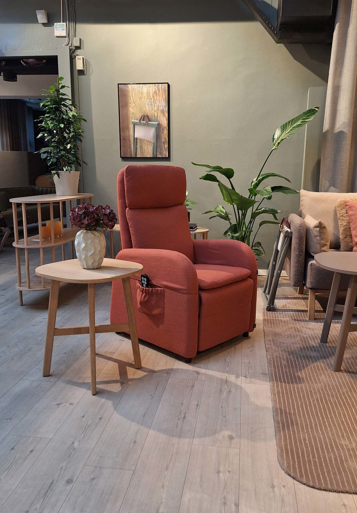Ein zentrales Element der Serie ist der Dahlia Recliner, ein komfortabler Pflegesessel für Senioren und Menschen mit eingeschränkter Mobilität. Rückenlehne und Fußstütze lassen sich elektrisch verstellen und ermöglichen unterschiedliche Sitz- und Liegepositionen.
