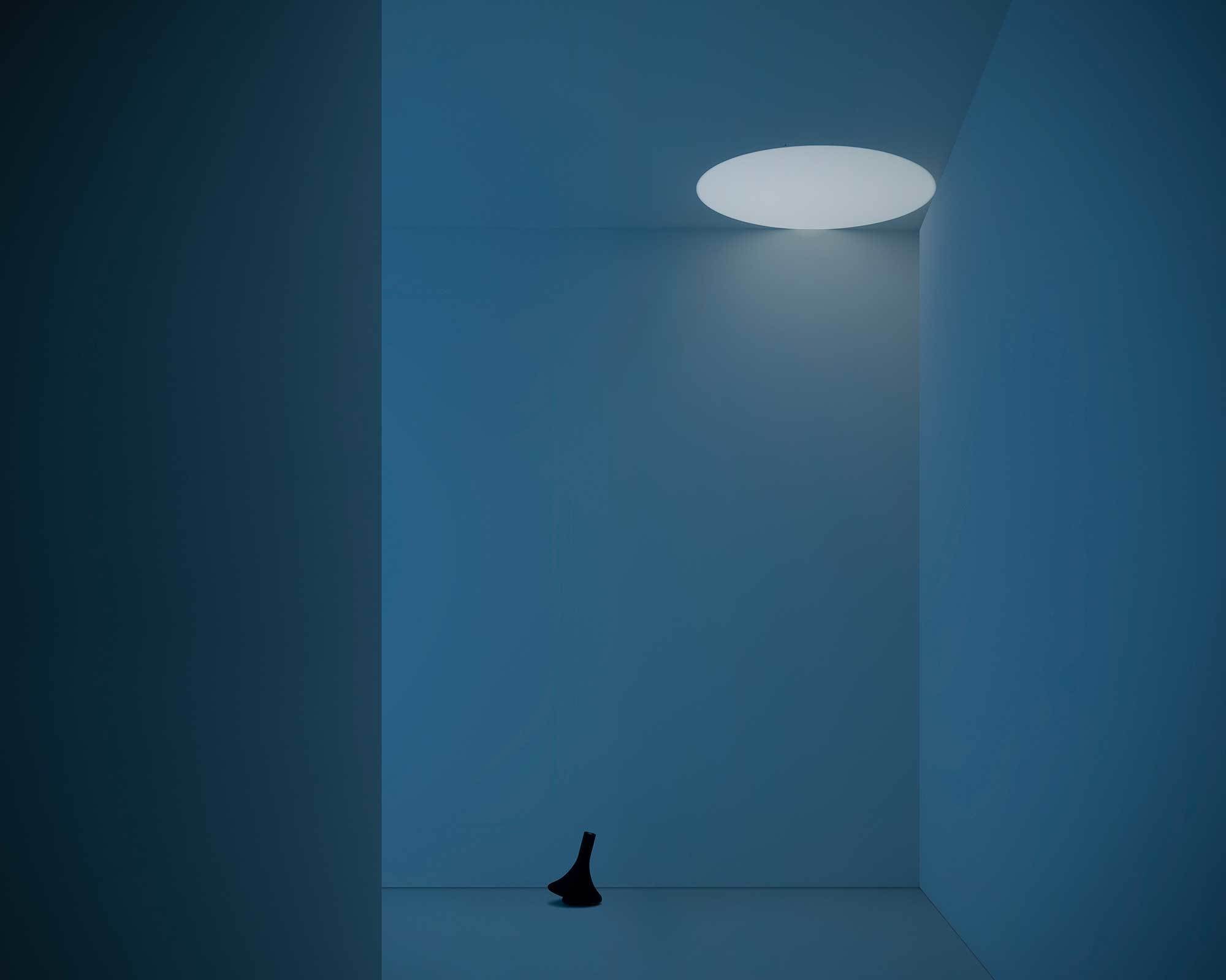Die Silhouette von OneOff erinnert an einen überdimensionalen Kreisel. Ähnlich wie dieser lässt sich die knapp 30 Zentimeter hohe Leuchte frei im Raum positionieren. Sie projiziert einen scharf abgegrenzten Lichtkreis an Decke oder Wand. Die verborgene LED-Lichtquelle ist dimmbar und erlaubt die Wahl zwischen warmen oder neutralen Weißtönen. Optional können farbige Filter eingesetzt werden, um die Lichtstimmung zu variieren. Das Ergebnis sind gezielte Akzente ohne Blendung.