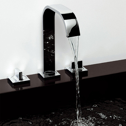 Der "Liquid Space" nimmt Form an. Badelemente scheinen aus weißen Keramikflächen herauszuwachsen