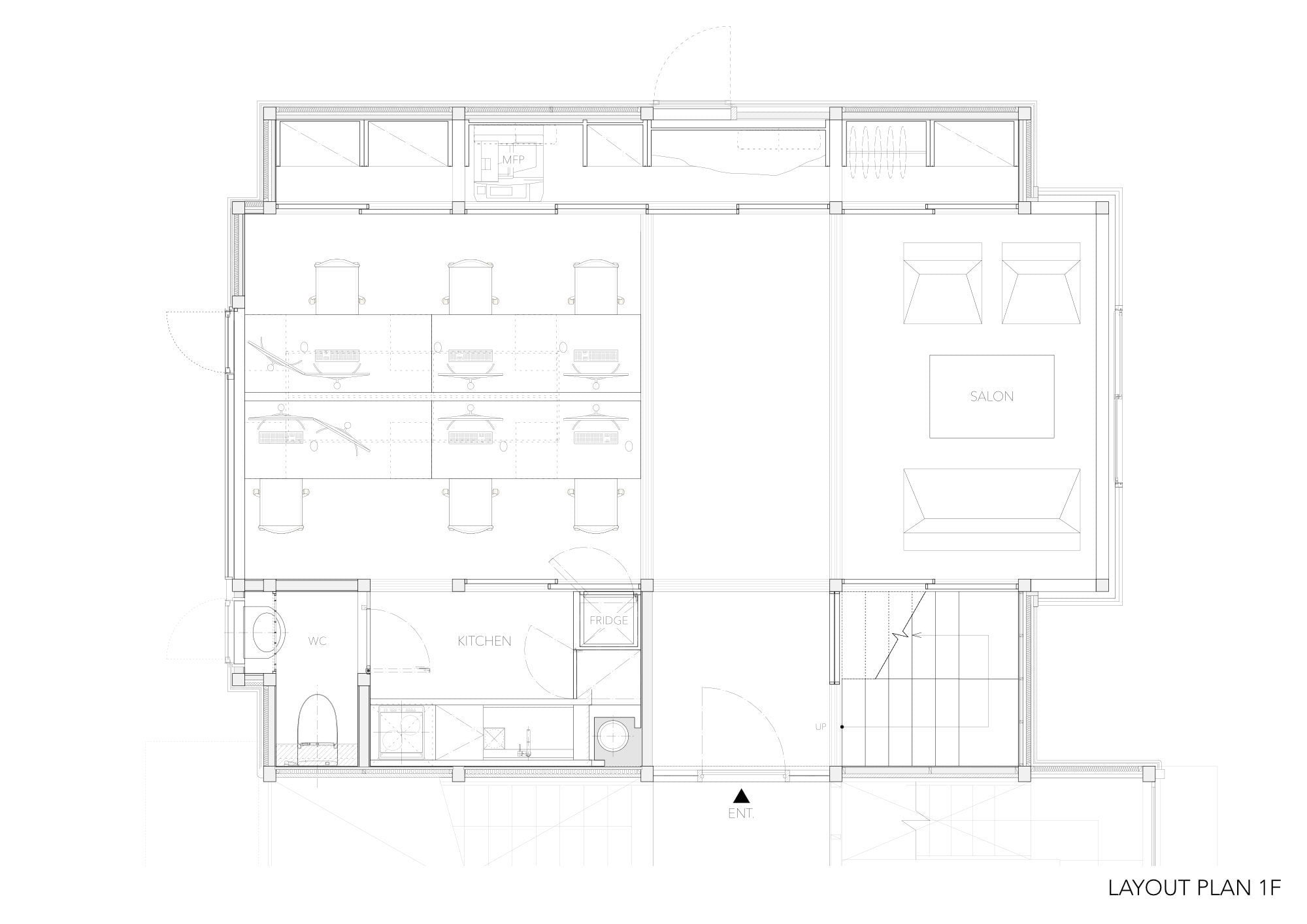 Bei der Modernisierung und dem Umbau des ikonischen Architektenwohnhauses zum Büro galt es, Vorhandenes zu erhalten und seine Kontinuität anzustreben. Hayashi hatte seine Innenräume einst vollständig in Holz gefasst, von den Deckenbalken über die Wandverkleidungen und Türen bis zu den Einbaumöbeln. Synthetische Materialien wurden konsequent vermieden, Raumteiler und Fenstersichtschutz aus Washi-Papier gefertigt.