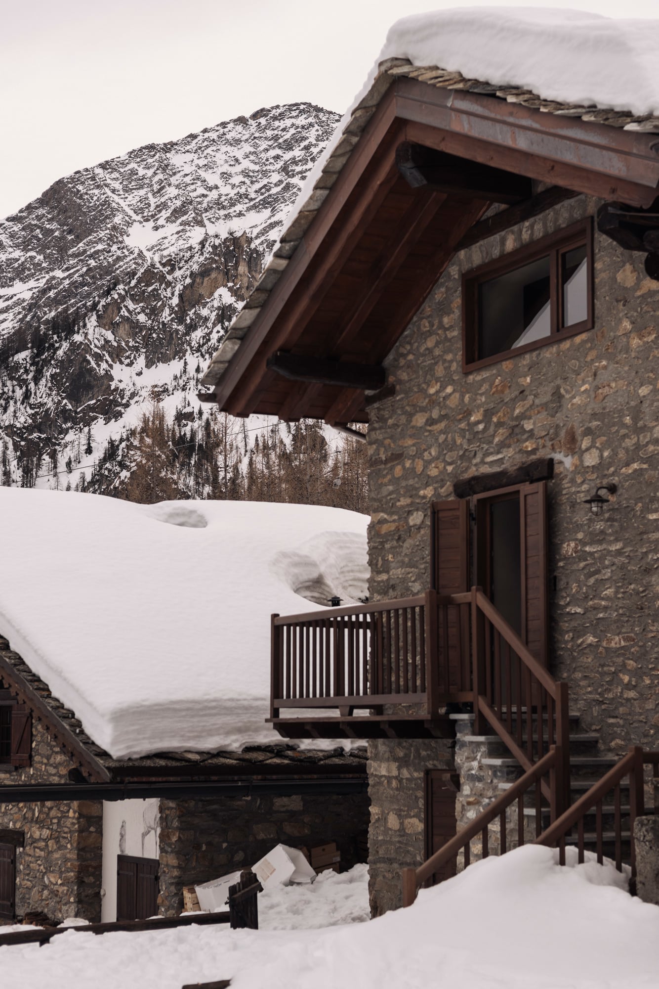 „Die Landschaft um Courmayeur ist geprägt von einer stillen Kraft, dem Spiel des Lichts auf den Gipfeln und dem Duft der Kiefern nach dem Schnee. Wir wollten, dass sich das Haus in diese Umgebung einfügt.“, erzählt Ann Butaye, Designerin und Mitbegründerin von Maison Osaïn. Als sie und ihr Co-Founder, der Architekt Thomas Maria Verschuren, das Haus zum ersten Mal sahen, war es in einem sehr schlechten Zustand und diente als Lagerraum für das benachbarte Restaurant. Lediglich die Fassade konnte erhalten bleiben. „Das Chalet hatte eine Ehrlichkeit, die wir nicht verlieren wollten. Wir haben es fast vollständig erneuert, aber immer mit der Absicht, seine stille Würde zu bewahren“, so Verschuren.