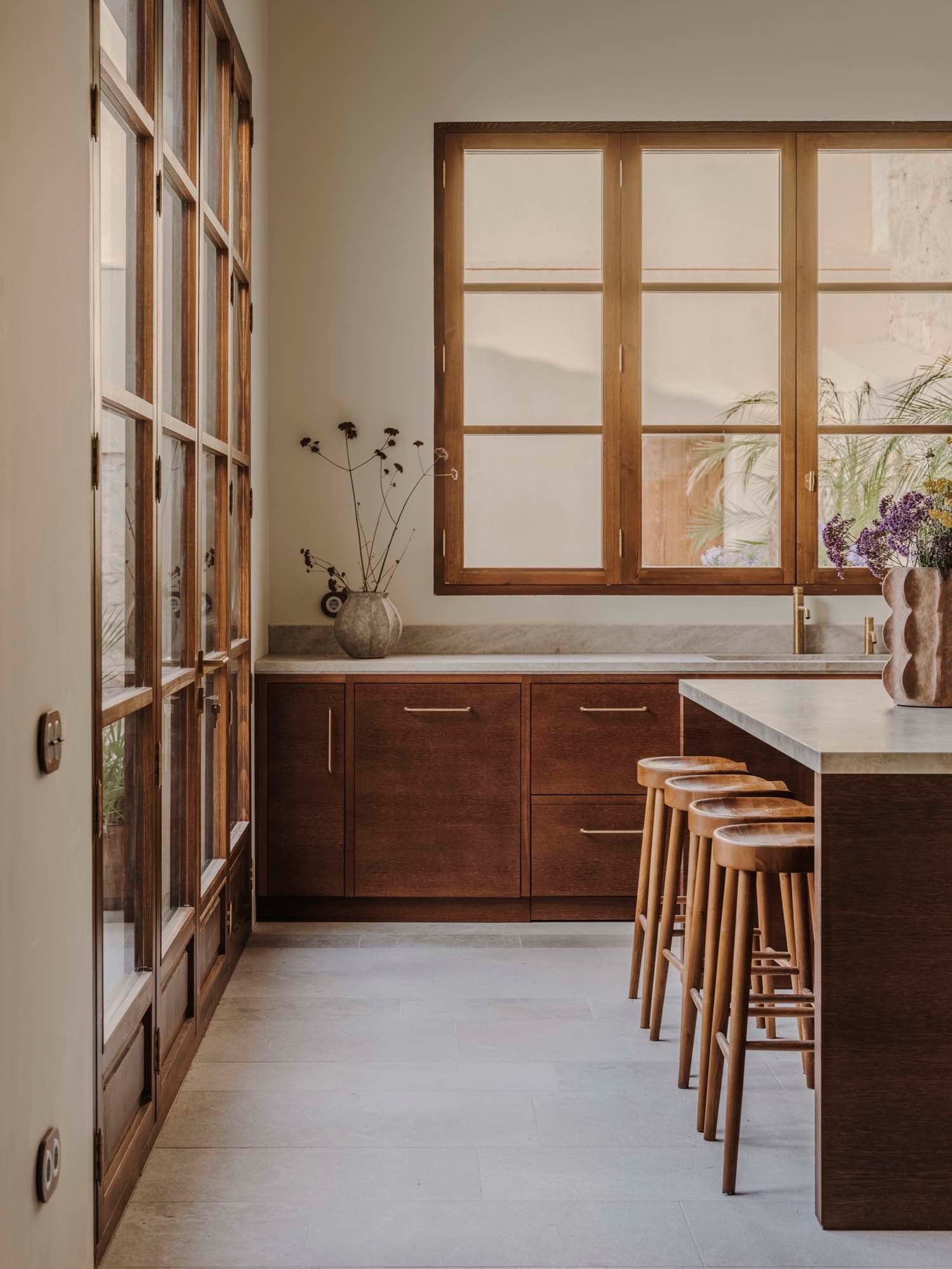 Ein solches Stadtpalais, geprägt von massiven Steinmauern, großen Holztoren und hohen Decken, wurde nun behutsam von Nøra Studio renoviert. Das Architekturbüro mit Sitz in Sa Pobla ist dafür bekannt, mallorquinische Tradition mit großer Sensibilität in die Gegenwart zu überführen.