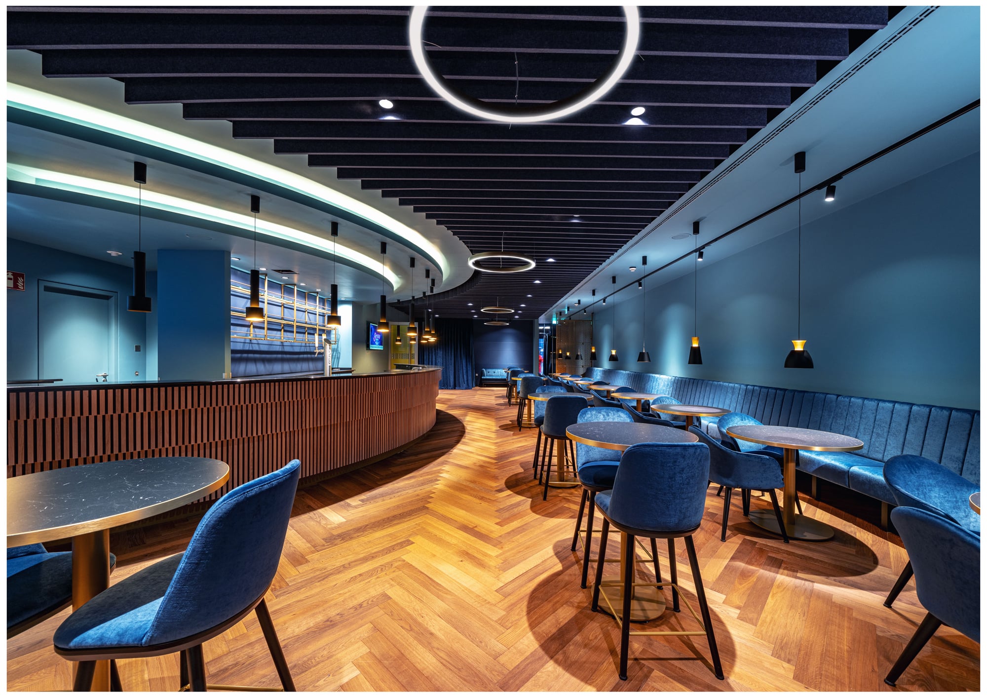 In den Bar- und Loungebereichen zeigt sich die neue Lichtarchitektur von ihrer atmosphärischen Seite. Maßgefertigte Circle-Lichtringe aus gebürstetem Aluminium wurden speziell für das Projekt entwickelt und prägen die zentralen Treffpunkte des Hauses. Sie schweben über runden Tischen und fassen die warmen Materialien der Innenarchitektur zusammen.