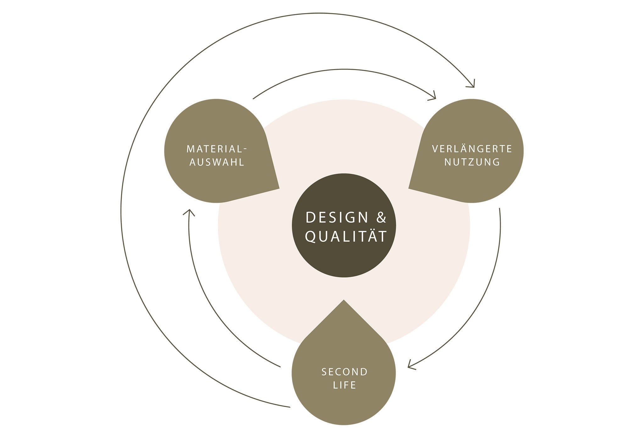 Zirkuläres Design wird in der Architektur- und Möbelbranche zunehmend zum Standard – nicht zuletzt, weil Ressourcen begrenzt sind und lineare Produktionsmodelle an ihre Grenzen stoßen. Statt Nutzung und anschließender Entsorgung rückt die Kreislaufwirtschaft geschlossene Materialströme in den Mittelpunkt: Produkte sollen reparierbar, langlebig und wiederverwertbar sein. Brunner hat diesen Ansatz fest in die eigene Entwicklung integriert. Das Unternehmen sieht darin die gestalterische und ökologische Aufgabe, Designqualität über den gesamten Lebenszyklus zu sichern. Kreislauffähige Möbel schonen Ressourcen, erweitern ihre Nutzungsdauer und reduzieren Abfall. Brunner folgt dabei drei Prinzipien: Materialauswahl, verlängerte Nutzung und Second Life.